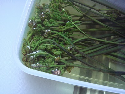 おじいちゃんが「早起きは三文の得や~!」と言いながら差し入れしてくれたわらび。