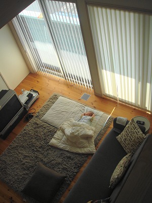 ひさびさに、ロフトにあがって作業していると、れい君が寝ている姿が目に付きました!