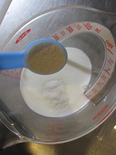 まずは、パンに入れる水分(175ccの牛乳)に、