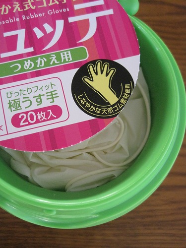 透明なケースには使い捨て手袋がギュウギュウゆうてはります。