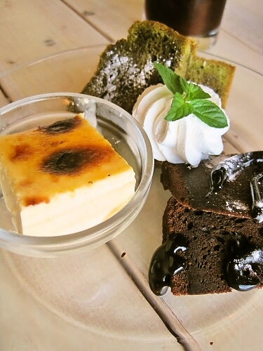 結局、クレームブリュレと抹茶のシフォンとガトーショコラに。