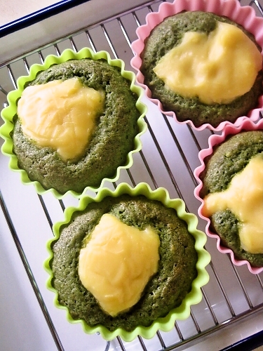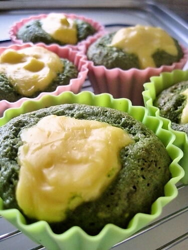 豆乳のカスタードを入れたマフィンを焼きました。