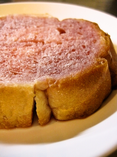 まず、食パンに赤ワインをしみこませます。