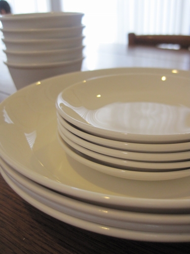 近所のスーパーで大量に買い込んだ白い食器たち。