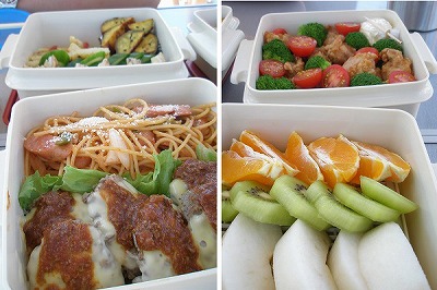 豆腐ハンバーグやら唐揚やら甘めの玉子焼きなど。