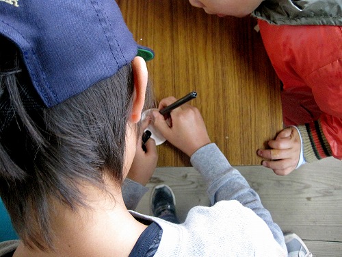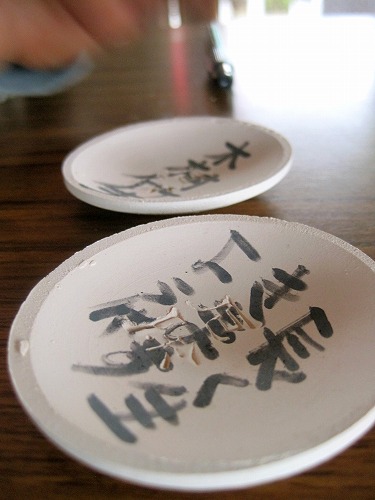 2枚の小さな瓦に「名前」「願い事」を書き込んで、